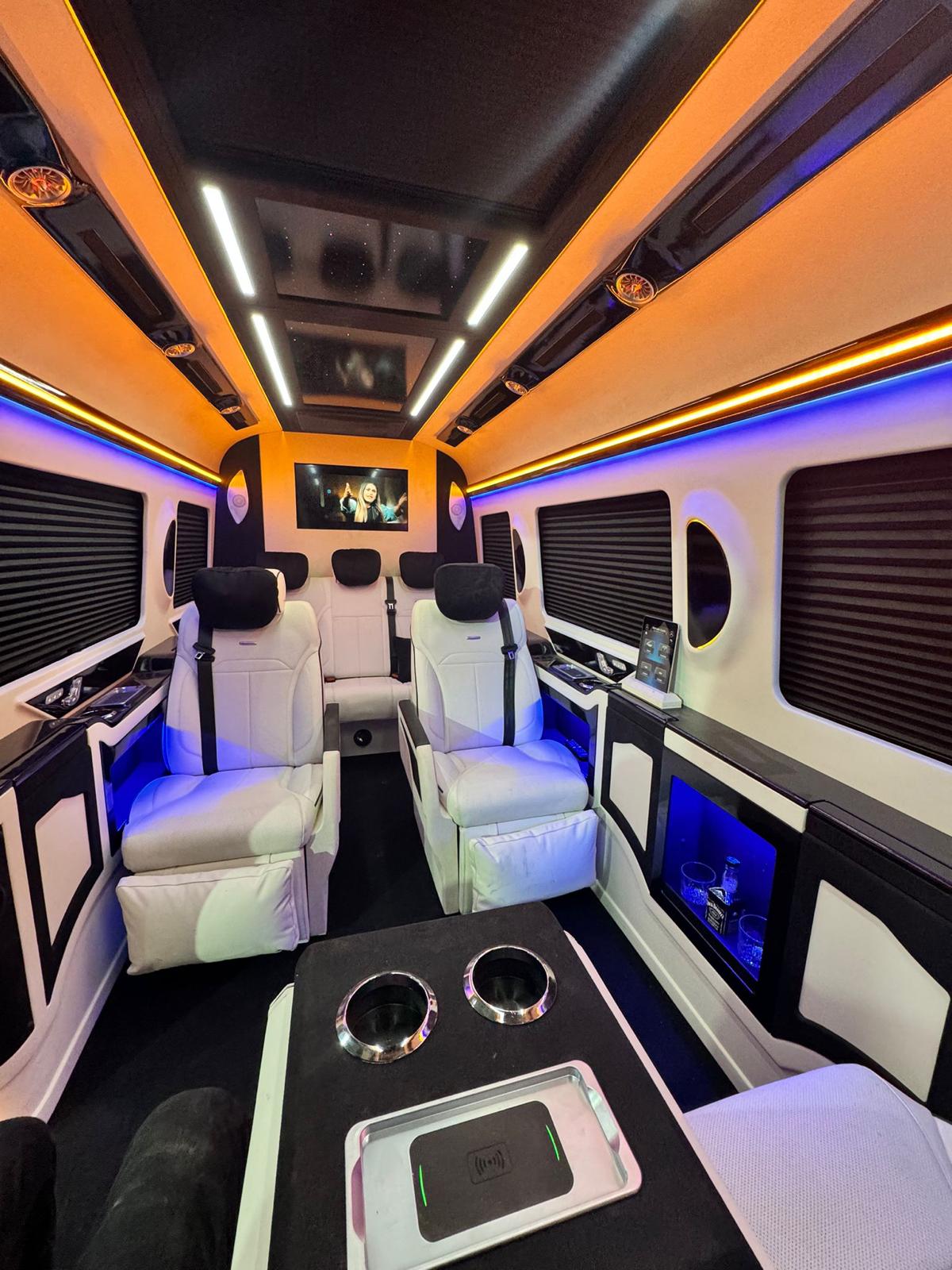 Mercedes Sprinter VIP dizayn çalışmamız, konforlu bir yolculuk deneyimi sunmak üzere özel olarak tasarlandı. Elit VIP Design olarak, Mercedes Sprinter aracınızı sadece bir ulaşım aracı değil, aynı zamanda lüks bir yaşam alanı haline getiriyoruz. İç tasarımında kullanılan yüksek kaliteli deri döşemeler, özel aydınlatma sistemleri, USB, HDMI girişleri ve 220V priz gibi detaylarla hem işlevsellik hem de şıklık bir arada sunuluyor. Ayrıca geniş depolama alanları, elektrikli masa ve asansörlü ayırıcı bölmeler gibi ek özelliklerle Sprinter modelini tamamen ihtiyaçlarınıza göre kişiselleştiriyoruz. Bu VIP dizayn projesi, hem kısa seyahatlerde hem de uzun yolculuklarda rahatlık ve prestiji bir arada yaşamanız için ideal bir çözüm sunar.
